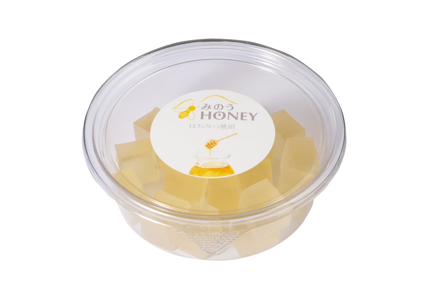 和菓子の製法、金玉羹(きんぎょくかん)で琥珀色の美しいお菓子が出来ました。名前は、「はちみつ琥珀」。シャリシャリとした食感の後に口いっぱい広がる蜂蜜の味をどうぞ。